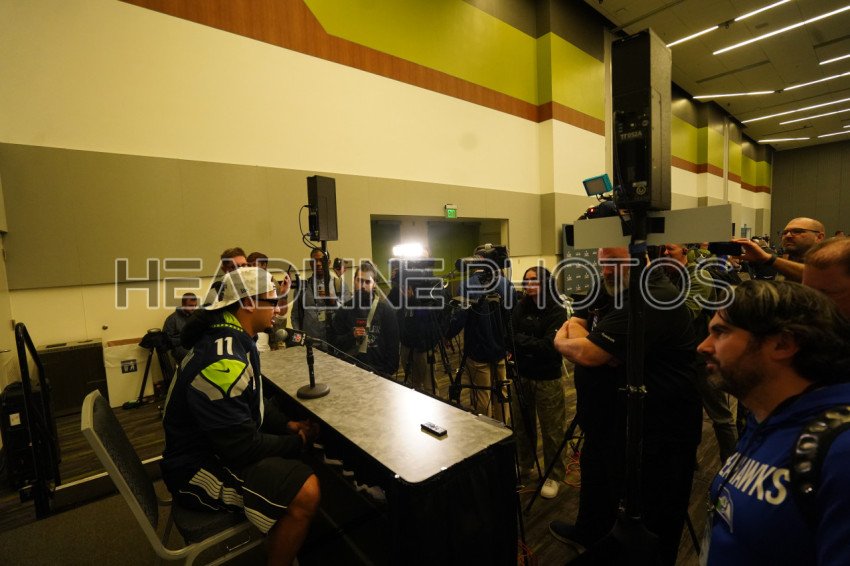 Jaxon Smith-Njiigba During the Seattle Seahawks Press Conference at the San Jose Convention Center, San Jose, California, USA