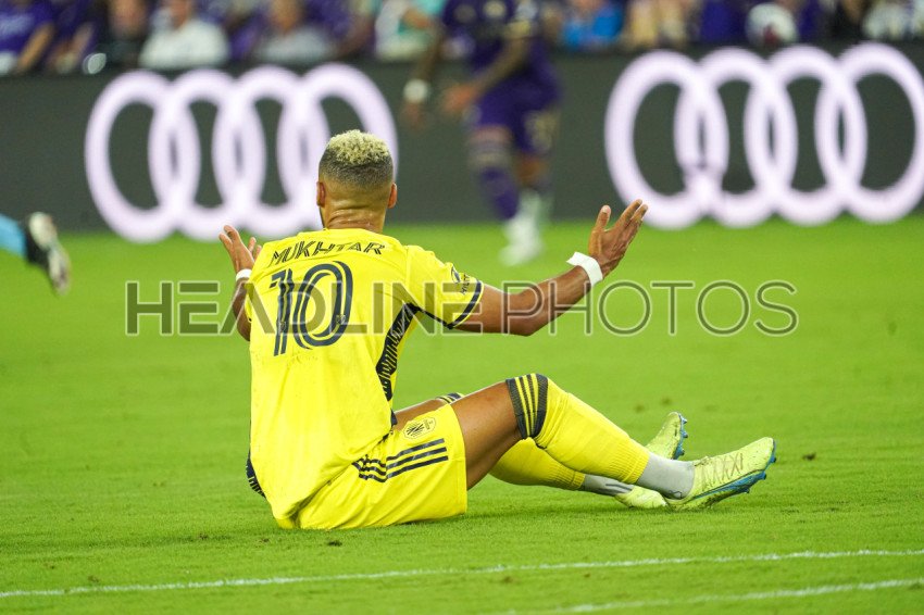 Orlando, Florida, USA, October 30, 2023, Nashville SC forward Hany Mukhtar #10 on the floor pleeding with the ref at Exploria Stadium (Photo Credit: Marty Jean-Louis)