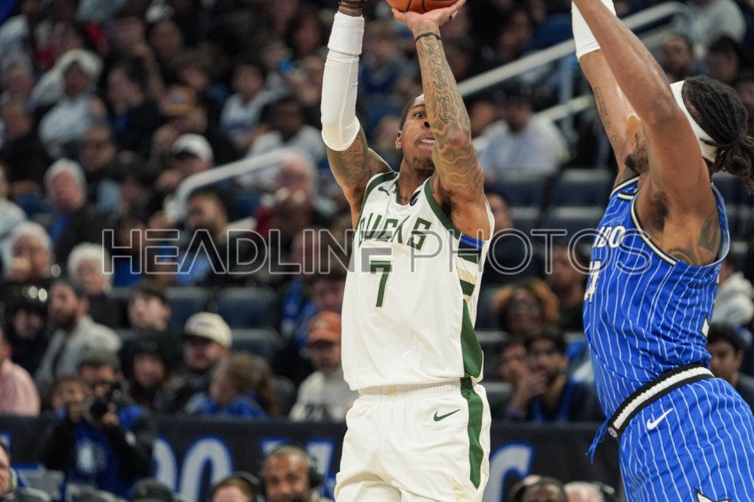 Orlando, Florida, USA, February 9, 2026, Milwaukee Bucks guard Kevin Porter Jr #7 shooting a three at the Kia Center. (Photo Credit: Marty Jean-Louis)