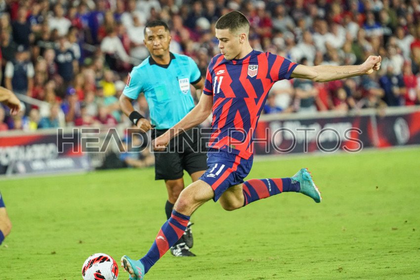 Orlando, Florida, March 27, 2022, USA Forward Gio Reyna #11 attempt to score in the 2022 World Cup Qualifier at Exploria Stadium. (Photo Credit: Marty Jean-Louis)