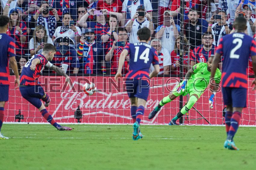 Orlando, Florida, March 27, 2022, USA Captain Christian Pulisic #10 makes a penalty kick in the 2022 World Cup Qualifier at Exploria Stadium. (Photo Credit: Marty Jean-Louis)