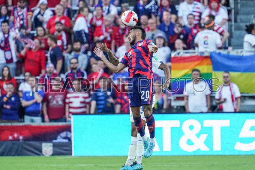 Orlando, Florida, March 27, 2022, USA Forward Jesus Ferreira wins the header in the 2022 World Cup Qualifier at Exploria Stadium. (Photo Credit: Marty Jean-Louis)