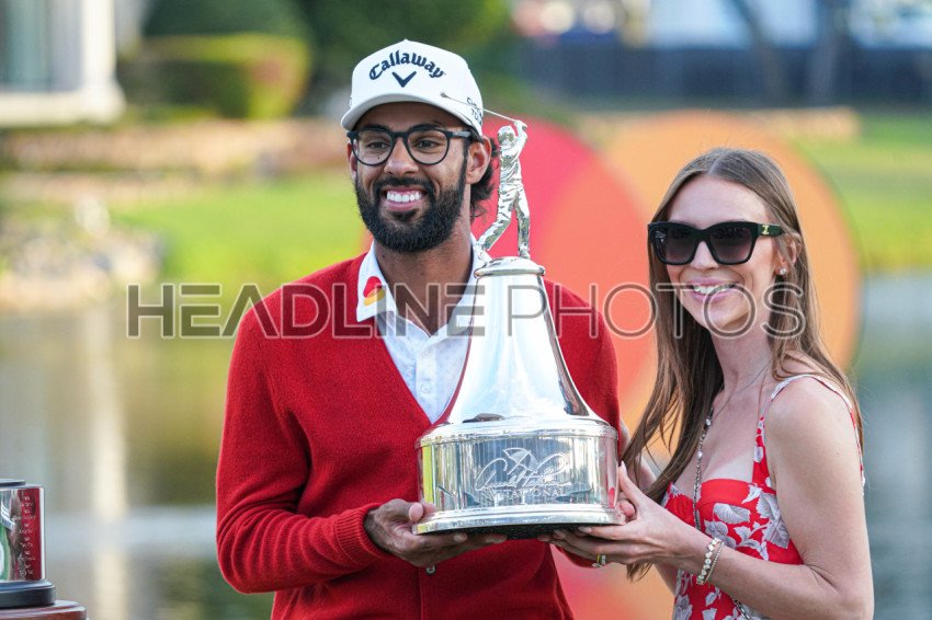 Orlando, Florida, USA, March 8, 2026, Akshay Bhatia and his wife Presleigh Schultz after wiinning the 2026 Arnold Palmer Invitational at Bay Hill Club. (Photo Credit: Marty Jean-Louis)