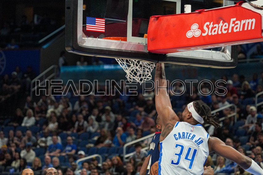Orlando, Florida, USA, March 11, 2026, Orlando Magic's Wendell Carter Jr #34 makes a dunk at the Kia Center. (Photo Credit: Marty Jean-Louis)