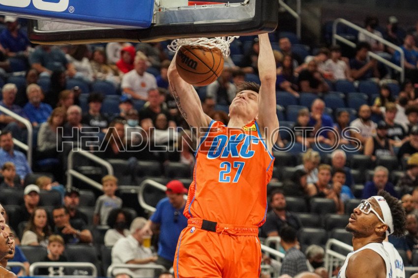 Orlando, Florida, USA, March 20, 2022, Oklahoma Thunder Guard Vit Krejci #27 makes a dunk in the first half at the Amway Center. (Photo Credit: Marty Jean-Louis)