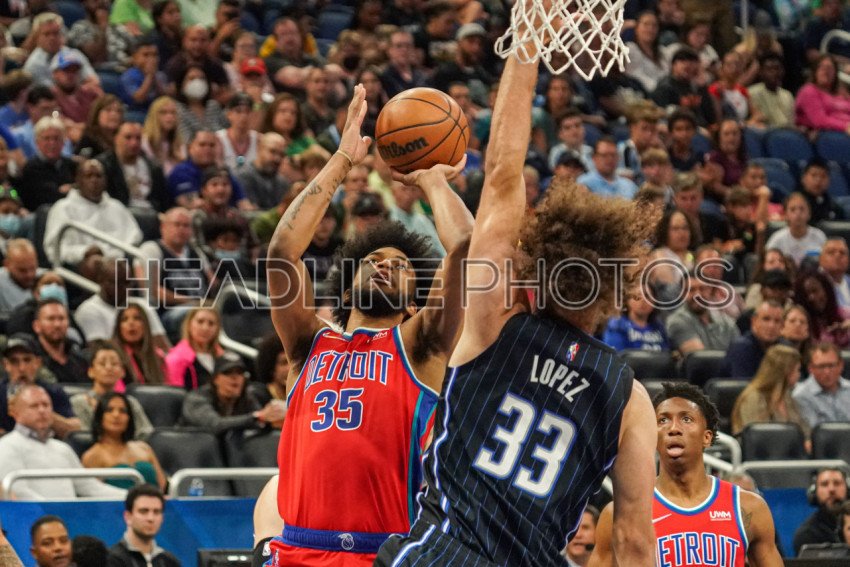 Orlando, Florida, USA, March 17, 2022, Detroit Pistons Power Forward Marvin Bagley III #35 attempt to make a shot against the Orlando Magic at the Amway Center. (Photo Credit: Marty Jean-Louis)