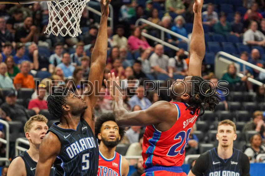 Orlando, Florida, USA, March 17, 2022, Detroit Pistons Center Isaiah Stewart #28 attempt to make a basket in the first quarter at the Amway Center. (Photo Credit: Marty Jean-Louis)