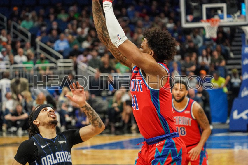 Orlando, Florida, USA, March 17, 2022, Detroit Pistons Small Forward Saddiq Bey #41 takes a three point shot in the first half at the Amway Center. (Photo Credit: Marty Jean-Louis)
