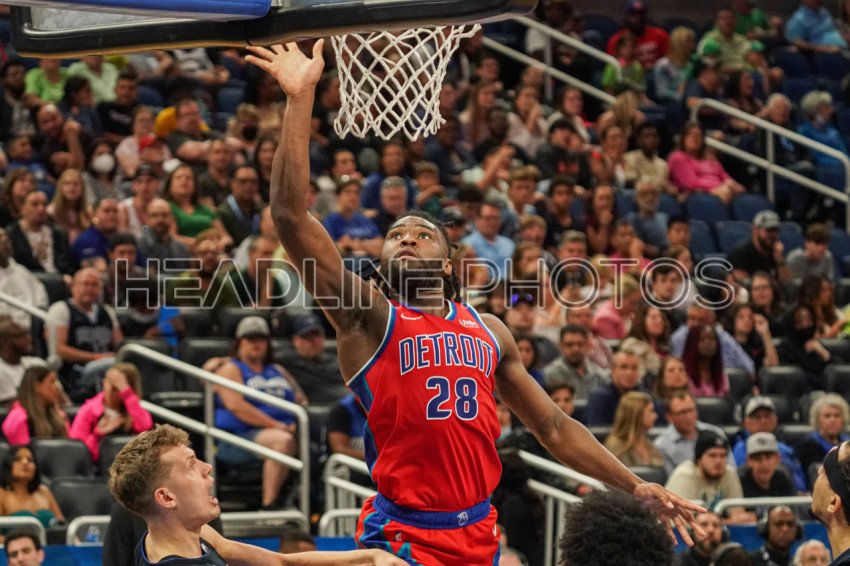Orlando, Florida, USA, March 17, 2022, Detroit Pistons Center Isaiah Stewart #28 makes a basket against the Orlando Magic at the Amway Center. (Photo Credit: Marty Jean-Louis)