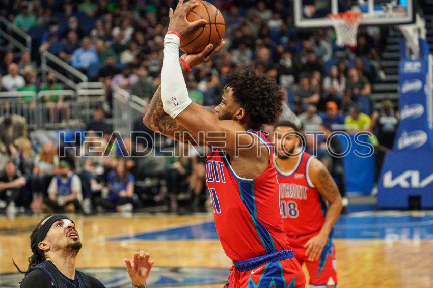 Orlando, Florida, USA, March 17, 2022, Detroit Pistons Small Forward Saddiq Bey #41 takes a three point shot in the first half at the Amway Center. (Photo Credit: Marty Jean-Louis)