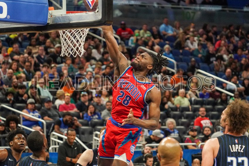 Orlando, Florida, USA, March 17, 2022, Detroit Pistons Center Isaiah Stewart #28 makes a dunk against the Orlando Magic at the Amway Center. (Photo Credit: Marty Jean-Louis)