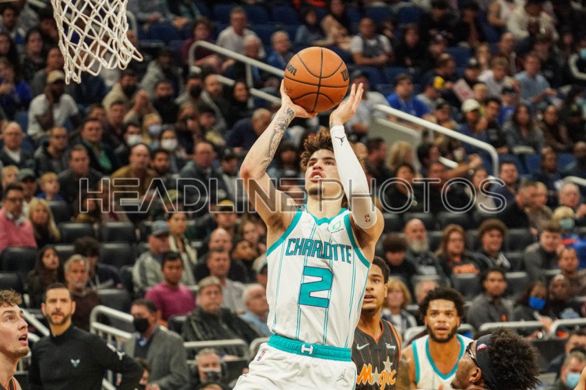 Orlando, Florida, USA, November 24, 2021, Charlotte Hornests Guard Lamelo Ball #2 takes a shot during the second quarter at the Amway Center. (Photo Credit: Marty Jean-Louis)