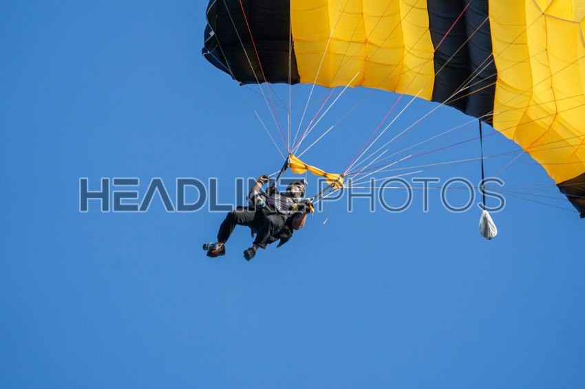 Orlando, Florida, USA, July 4, 2022, Paratrooper ascending to Exploria Stadium. (Photo Credit: Marty Jean-Louis)