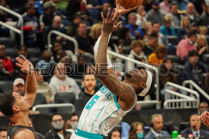 Orlando, Florida, USA, November 24, 2021, Charlotte Hornests forward Jalen McDaniels #6 attempt to make a shot against the Orlando Magic at the Amway Center. (Photo Credit: Marty Jean-Louis)
