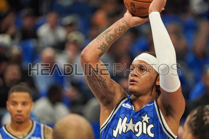 Orlando, Florida, USA, October 25, 2023, Orlando Magic forward Paoloa Banchero #5 shoots a free throw at the Amway Center. (Photo Credit: Marty Jean-Louis)