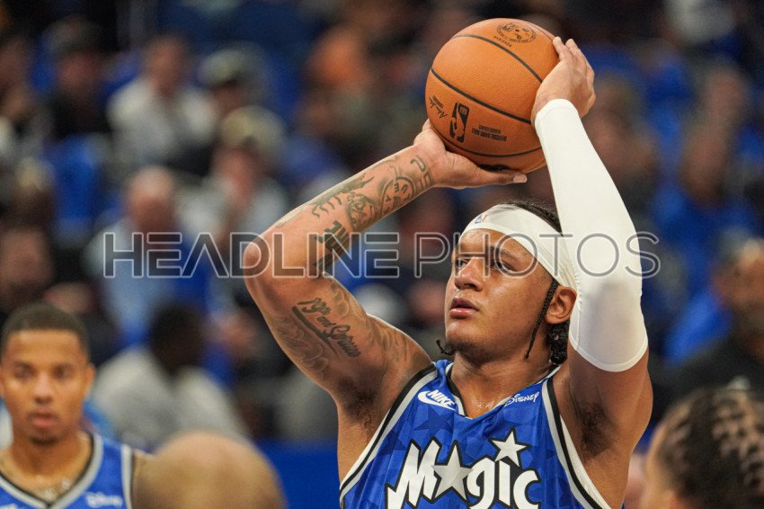 Orlando, Florida, USA, October 25, 2023, Orlando Magic forward Paoloa Banchero #5 shoots a free throw at the Amway Center. (Photo Credit: Marty Jean-Louis)