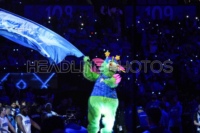 Orlando, Florida, USA, October 25, 2023, Orlando Magic's Mascot Stuph the Magic Dragon at the Amway Center. (Photo Credit: Marty Jean-Louis)
