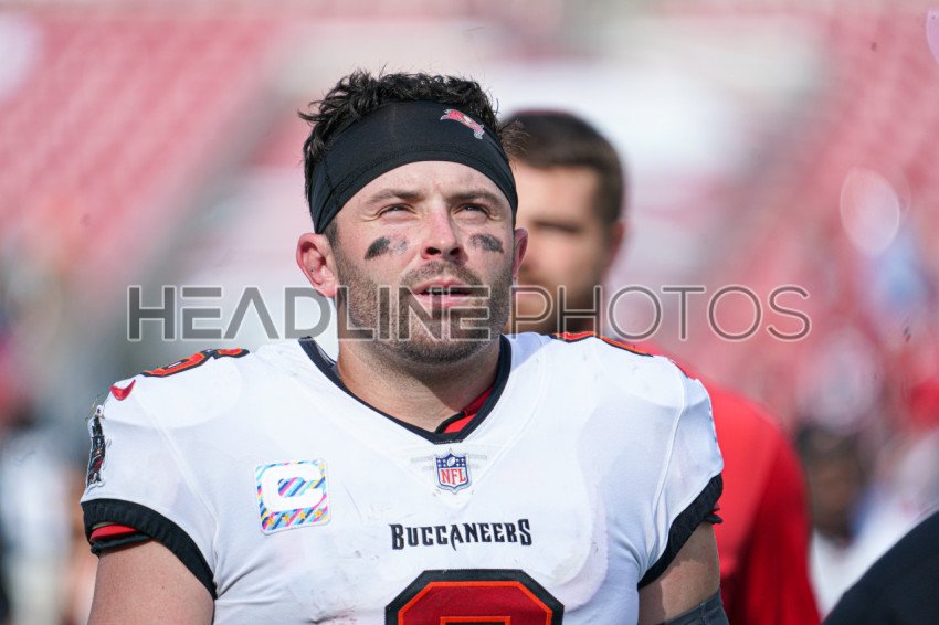 Tampa Bay, Florida, USA, October 22, 2023, Tampa Bay Buccaneers Quarterback Baker Mayfield #6 at Raymond James Stadium. (Photo Credit: Marty Jean-Louis)