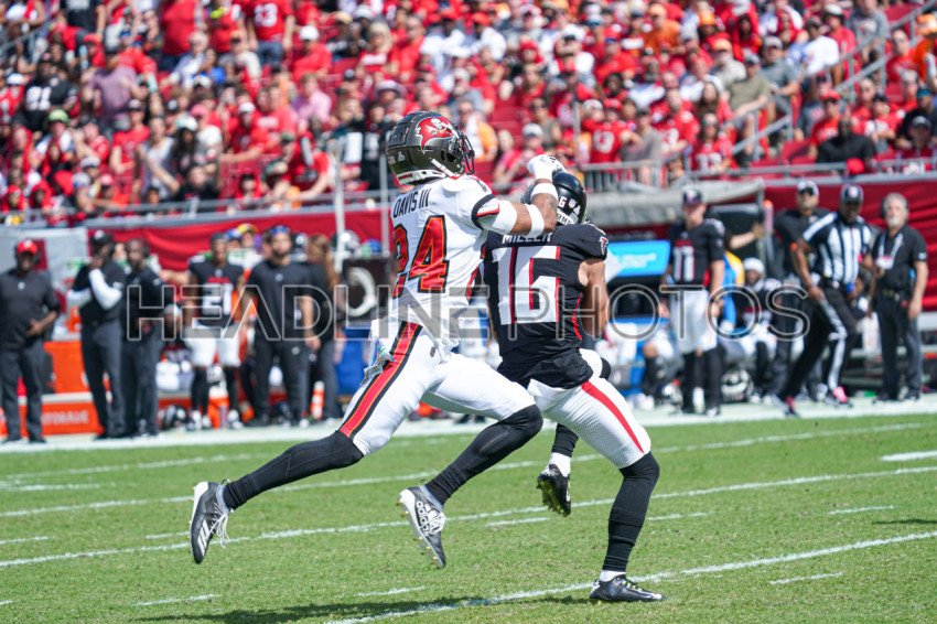 Tampa Bay, Florida, USA, October 22, 2023, Atlanta Falcons Wide Receiver Scotty Miller #16 receives a pass during the first half at Raymond James Stadium. (Photo Credit: Marty Jean-Louis)