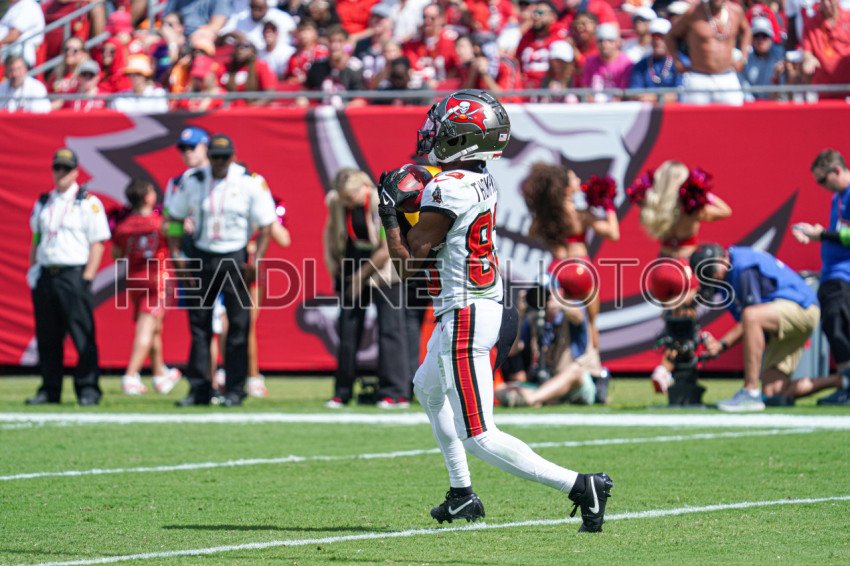 Tampa Bay, Florida, USA, October 22, 2023, Tampa Bay Buccaneers player Deven Thompkins catch the ball at Raymond James Stadium. (Photo Credit: Marty Jean-Louis)