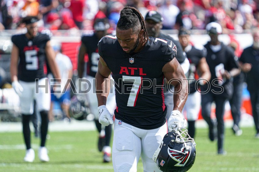 Tampa Bay, Florida, USA, October 22, 2023, Atlanta Falcons player Bijan Robinson #7 at Raymond James Stadium. (Photo Credit: Marty Jean-Louis)
