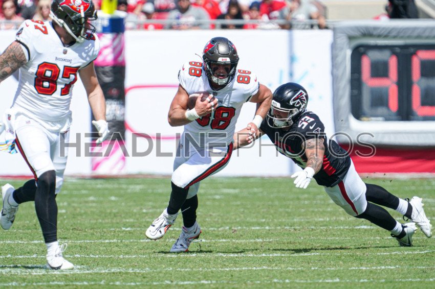Tampa Bay, Florida, USA, October 22, 2023, Tampa Bay Buccaneers Tight End Cade Otton #88 makes a run during the first half at Raymond James Stadium. (Photo Credit: Marty Jean-Louis)