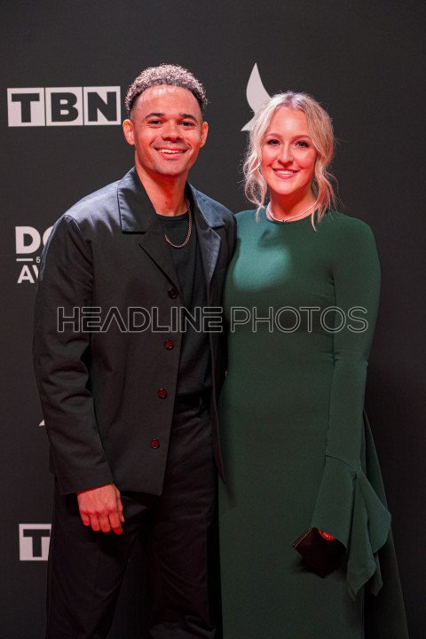 Nashville, Tennessee, USA, October 17, 2023. Tauren Wells and his wife On the red carpet during 54th Annual GMA Dove Awards at the Allen Arena at Lipscomb University (Photo Credit: Marty Jean-Louis)