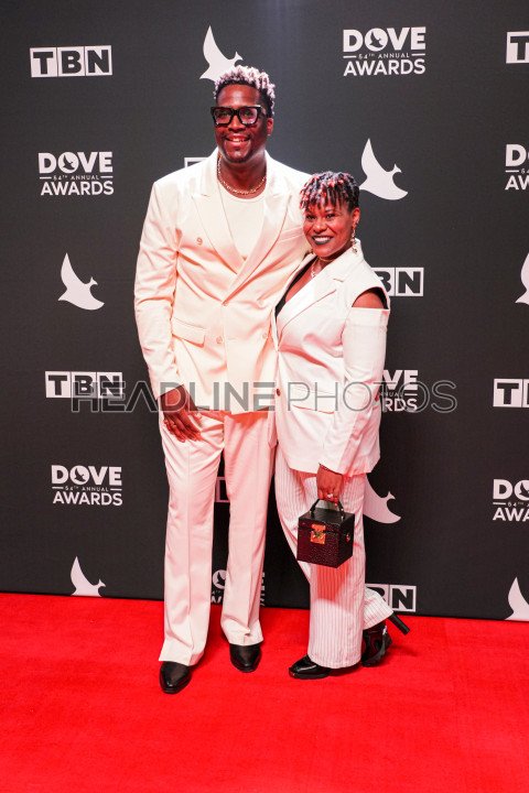 Nashville, Tennessee, USA, October 17, 2023. KJ Scriven On the red carpet during 54th Annual GMA Dove Awards at the Allen Arena at Lipscomb University (Photo Credit: Marty Jean-Louis)
