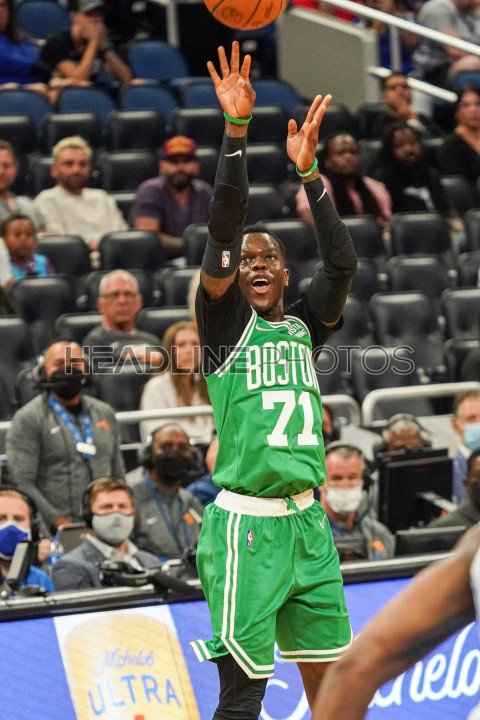 Orlando, Florida, USA, November 3, 2021, Boston Celtics player Dennis Schroder #71 shoots a three point during the fourth quarter at the Amway Center. (Photo Credit: Marty Jean-Louis)