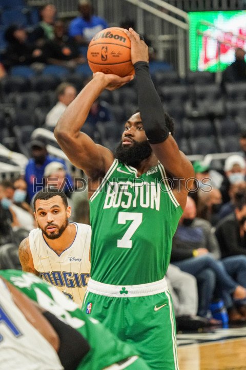 Orlando, Florida, USA, November 3, 2021, Boston Celtics Guard Jaylen Brown #7 shoots a free throw during the fourth quarter at the Amway Center. (Photo Credit: Marty Jean-Louis)