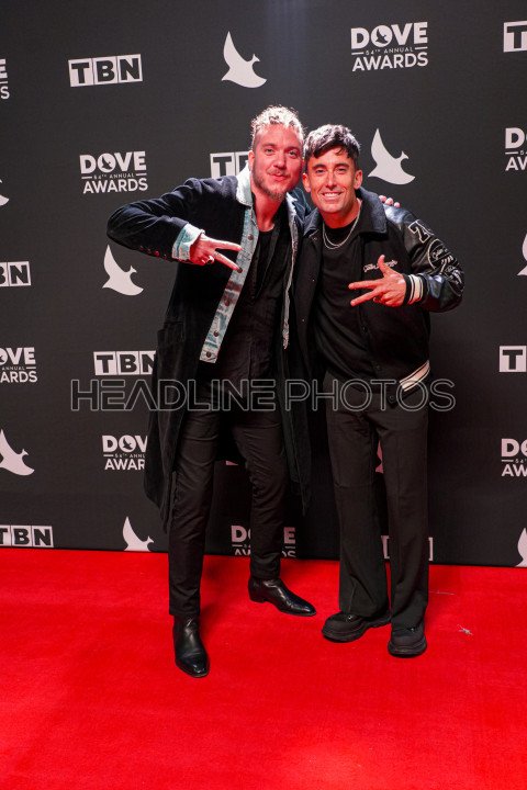 Nashville, Tennessee, USA, October 17, 2023. Brandon Lake, Phil Wickham On the red carpet during 54th Annual GMA Dove Awards at the Allen Arena at Lipscomb University (Photo Credit: Marty Jean-Louis)