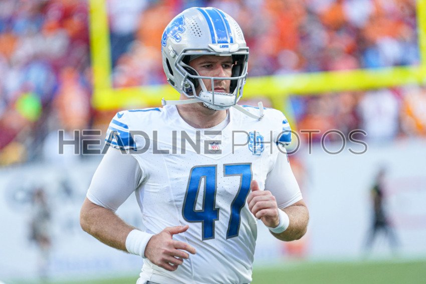 Tampa Bay, Florida, USA, October 15, 2023, Detroit Lions player Scott Daly #47 at Raymond James Stadium. (Photo Credit: Marty Jean-Louis)