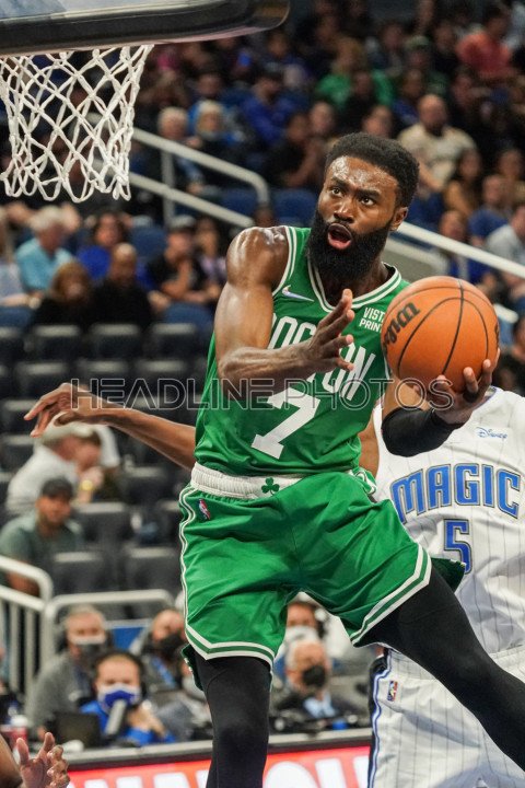 Orlando, Florida, USA, November 3, 2021, Boston Celtics Guard Jaylen Brown #7 attempt to make a shot during the third quarter at the Amway Center. (Photo Credit: Marty Jean-Louis)
