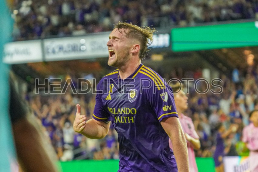 Orlando, Florida, USA, September 24, 2023, Orlando City SC player Duncan McGuire #13 reacts afer scoring at Exploria Stadium. (Photo Credit: Marty Jean-Louis)