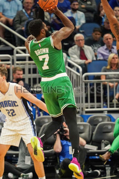 Orlando, Florida, USA, November 3, 2021, Boston Celtics Guard Jaylen Brown #7 take a three point shot during the second quarter at the Amway Center. (Photo Credit: Marty Jean-Louis)