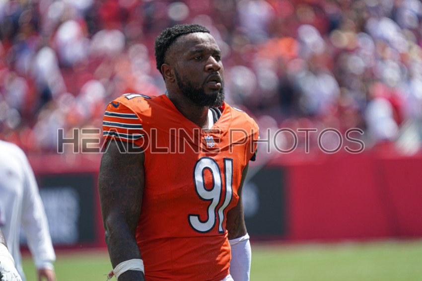 Tampa Bay, Florida, USA, September 17, 2023, Chicago Bears player Yannick Ngakoue #91 at Raymond James Stadium. (Photo Credit: Marty Jean-Louis)
