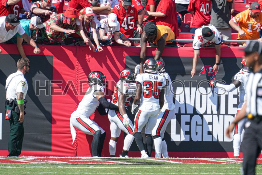 Tampa Bay, Florida, USA, September 17, 2023, Tampa Bay Buccaneers players celebrate win with some fans at Raymond James Stadium. (Photo Credit: Marty Jean-Louis)