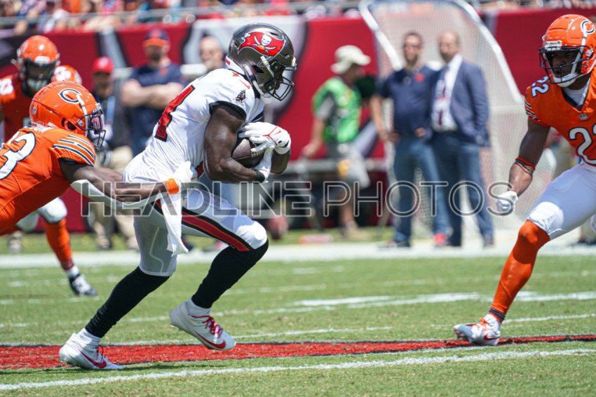 Tampa Bay, Florida, USA, September 17, 2023, Tampa Bay Buccaneers Wide Receiver Chris Goodwin #14 attempt to run pass Chicago players at Raymond James Stadium. (Photo Credit: Marty Jean-Louis)
