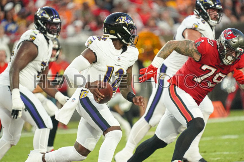 Tampa Bay, Florida, USA, August 26, 2023, Baltimore Ravens quarterback Anthony Brown #12 makes a run at Raymond James Stadium. (Photo Credit: Marty Jean-Louis)