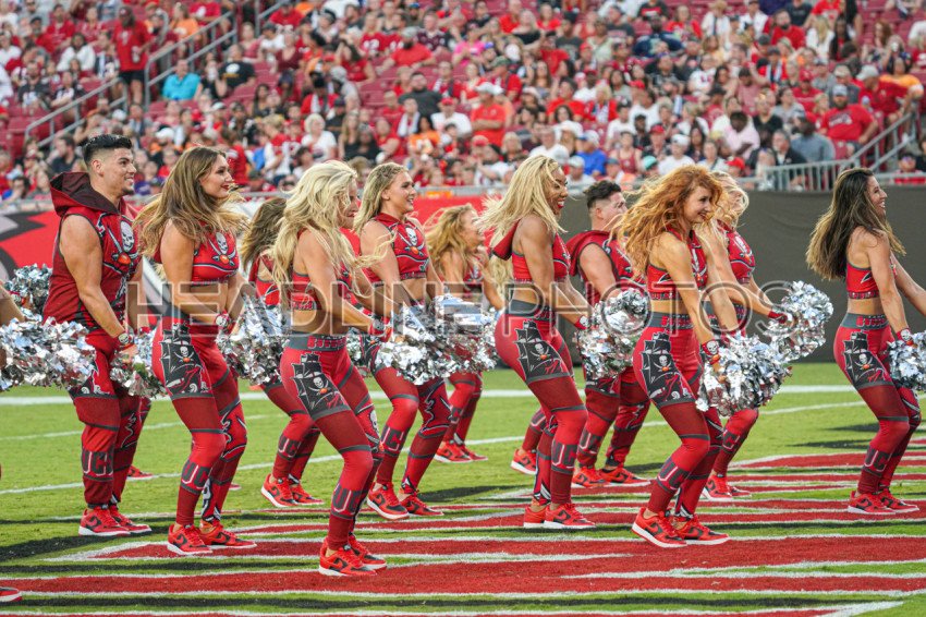 Tampa Bay, Florida, USA, August 26, 2023, Tampa Bay Buccaneers cheerleaders doing a routine dance at Raymond James Stadium. (Photo Credit: Marty Jean-Louis)