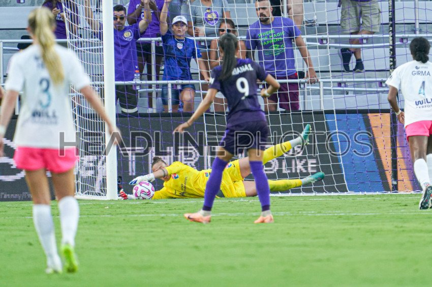 Orlando, Florida, USA, August 25, 2023, San Diego Wave goalkeeper Kailen Sheridan #1 makes a save at Exploria Stadium. (Photo Credit: Marty Jean-Louis)