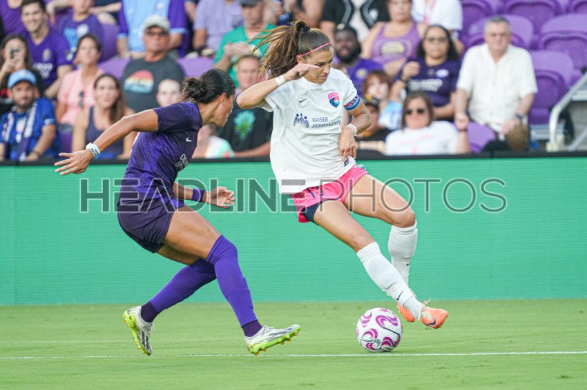 Orlando, Florida, USA, August 25, 2023, San Diego Wave forward Alex Morgan #13 receives a pass at Exploria Stadium. (Photo Credit: Marty Jean-Louis)