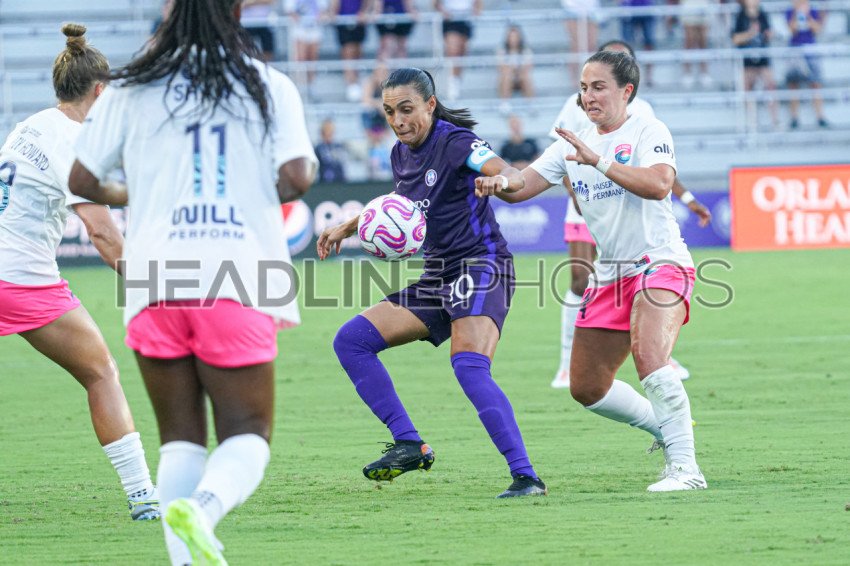 Orlando, Florida, USA, August 25, 2023, Orlando Pride player Marta #10 receives a pass at Exploria Stadium. (Photo Credit: Marty Jean-Louis)