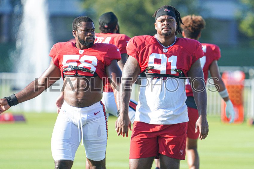 Tampa, Florida, USA, August 8, 2023, Tampa Bay Buccaneers players Markees Watts #58 and Mike Greene #91 during a Training Camp at Advent Health Training Center . (Photo Credit: Marty Jean-Louis)