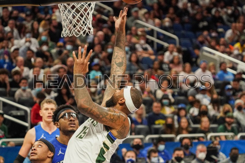 Orlando, Florida, USA, December 30, 2021, Milwaukee Bucks Center Demarcus Cousins #15 attempt to make a shot against the Orlando Magic during the second half at the Amway Center. (Photo Credit: Marty Jean-Louis)