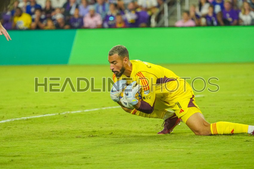 Orlando, Florida, USA, September 24, 2023, Inter Miami goalkeeper Drake Callender #1 makes a save at Exploria Stadium. (Photo Credit: Marty Jean-Louis)