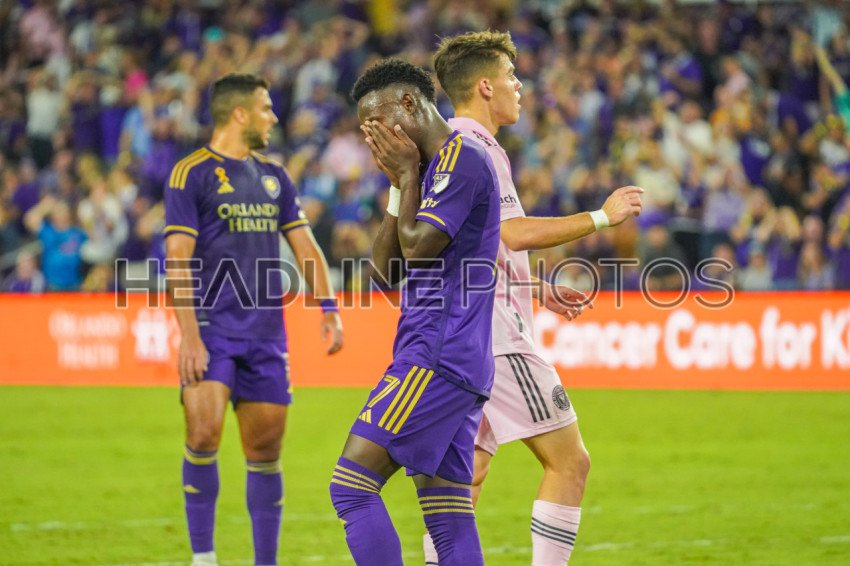 Orlando, Florida, USA, September 24, 2023, Orlando City SC player Ivan Angulo #77 react after missing an opportunit to score at Exploria Stadium. (Photo Credit: Marty Jean-Louis)