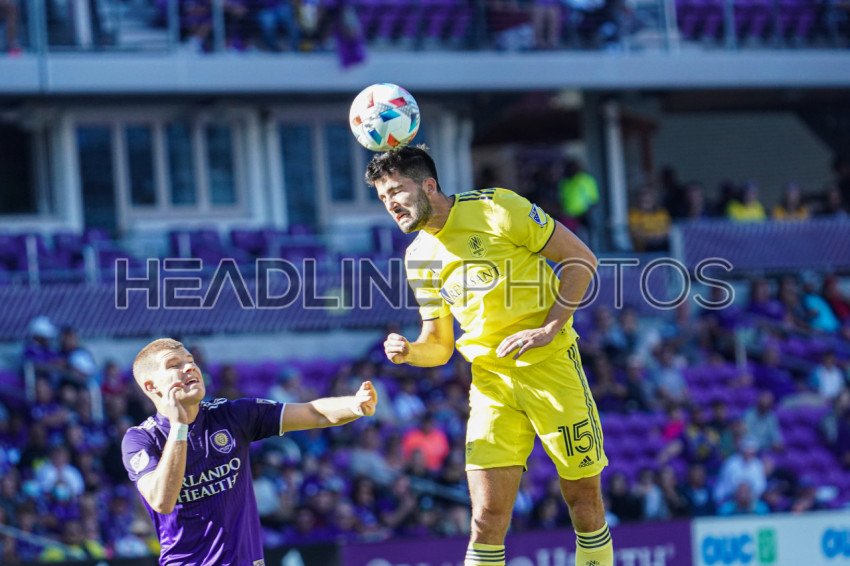 Orlando, Florida, USA, October 31, 2021, Nashville SC Midfielder Eric Miller #15 makes a header at Exploria Stadium (Photo Credit: Marty Jean-Louis)