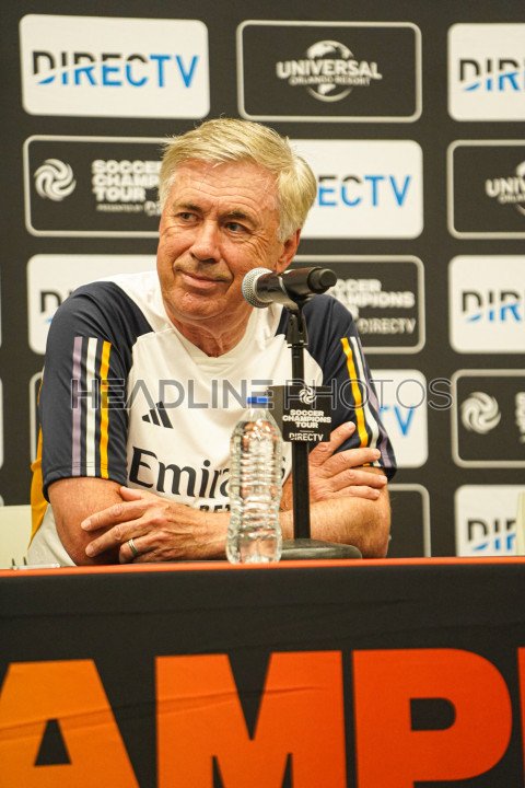 Orlando, Florida, USA, August 1, 2023, Press Conference with Real Madrid Manger Carlo Ancelotti before their Match against Juventus at Camping World Stadium . (Photo Credit: Marty Jean-Louis)
