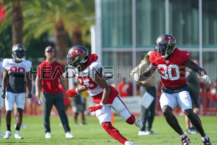 Tampa, Florida, USA, July 31, 2023, Tampa Bay Buccaneers Deven Thompkins #83 and Dee Delaney #30 during a Training Camp at Advent Health Training Center . (Photo Credit: Marty Jean-Louis)